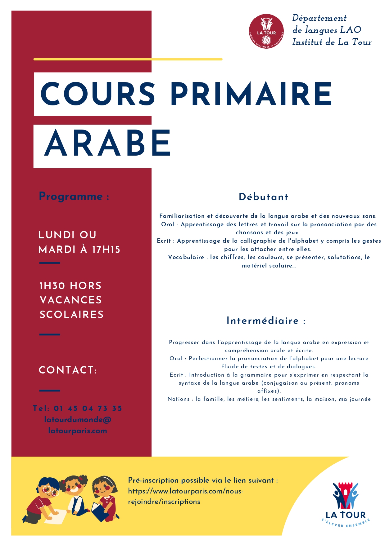 Cours de langue pour les enfants du primaire